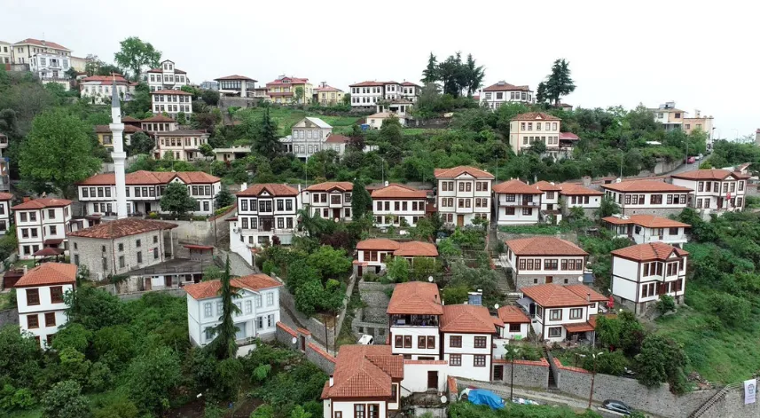 Bartın-Karabük sınırlarında bulunan 20 bin hektarlık alandaki 9 yaylada sonbaharla birlikte ağaçların sarı ve kahverenginin tonlarını almaya başlamasıyla ortaya çıkan manzara dronla görüntülendi.