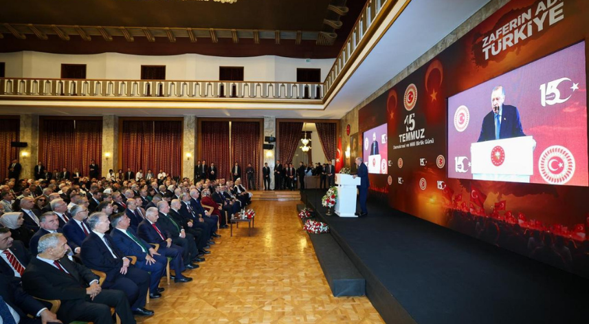 Ardından TBMM’ye geçen gazeteciler, Cumhurbaşkanı Recep Tayyip Erdoğan’ın 15 Temmuz Demokrasi ve Millî Birlik Günü Anma Töreni’ndeki konuşmasını dinledi. Erdoğan, “TBMM'nin tıpkı 15 Temmuz gecesi olduğu gibi tüm farklılıkları bir yana bırakıp dayanışma içinde ülkemizin terörden kurtulma mücadelesine de güçlü destek vereceğine yürekten inanıyorum” ifadelerini kullandı.