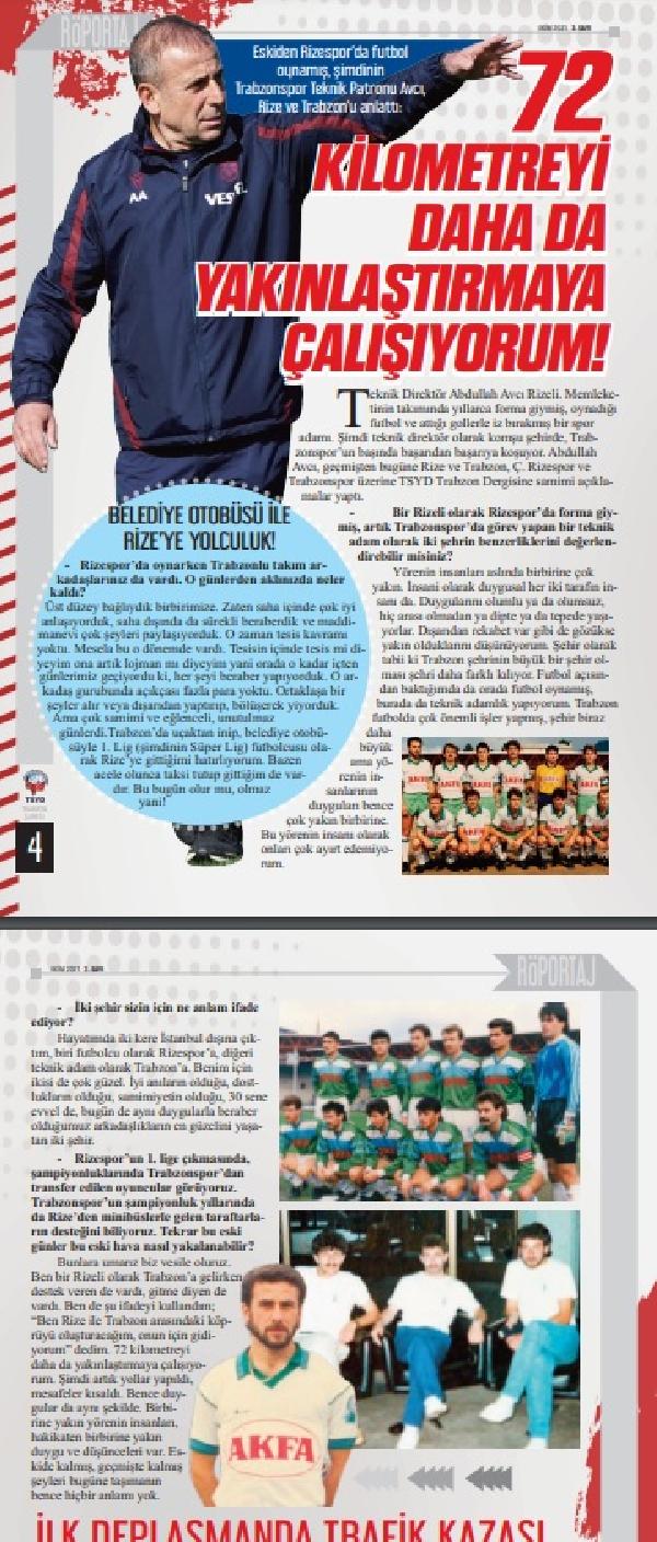 Süper Lig’de zirve koltuğunda yer alan Trabzonspor'da teknik direktör Abdullah Avcı, Cuma günü konuk edecekleri Çaykur Rizespor maçı öncesi TSYD Trabzon Dergisi’ne Rize ve Trabzon, Rizespor ve Trabzonspor üzerine samimi açıklamalarda bulundu.