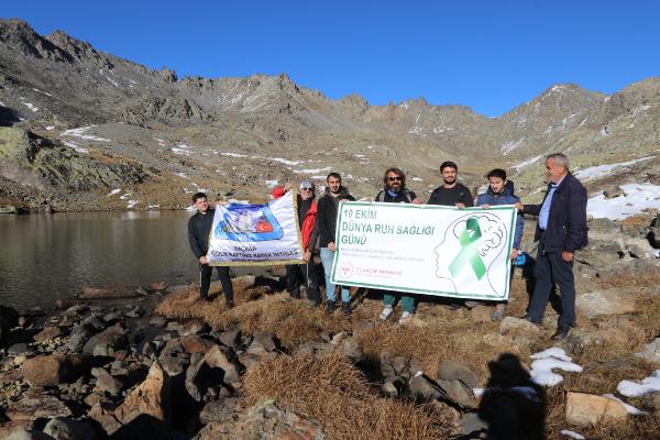 RİZE İl Sağlık Müdürlüğü’ne bağlı sağlık çalışanları ve Kaçkar Dağcılık Rafting Kayak Spor İhtisas Kulübü (KDRK) üyeleri, Dünya Ruh Sağlığı Günü’ne dikkat çekmek için 3 bin 50 rakımlı Ovit Dağı Aksu Gölü’ne tırmanış yürüyüşü gerçekleştirdi.