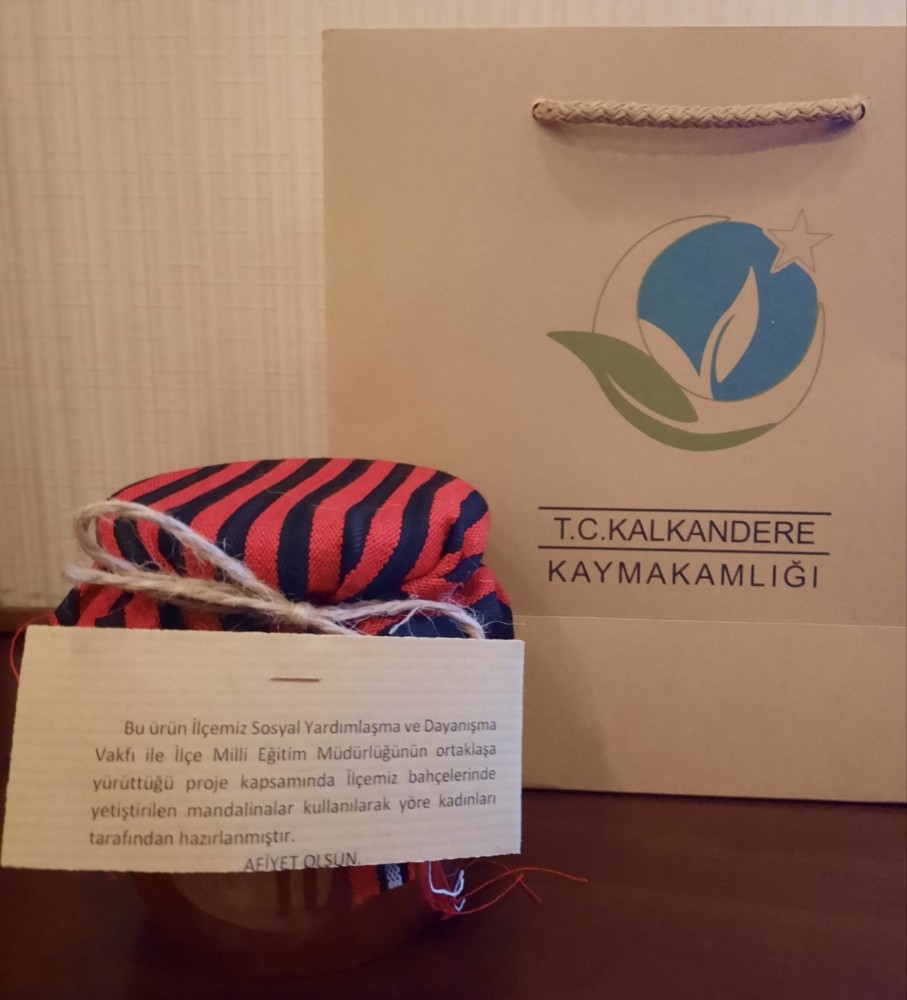 İlçe Kaymakamlığı İlçe Milli Eğitim Müdürlüğü, İlçe Sosyal Yardımlaşma ve Dayanışma Vakfı koordinesinde gerçekleştirilen projede Kalkandere’nin bahçelerinde yetiştirilen yerli mandalinalar ile reçel yapımında herhangi bir katkı maddesi karıştırılmadan tamamen yöresel pişirme teknikleri kullanıldı ve üretilen reçel kavanozlarında yöreye ait kültürel malzemelere yer verildi.