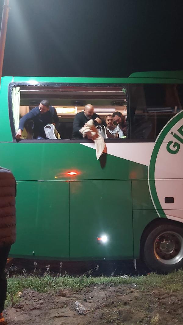 Olay, geçen cumartesi akşamı Samsun-Ordu Karayolu'nun Çarşamba ilçesi mevkisinde meydana geldi. Spor Toto 1'inci Lig'in 27'nci haftasında deplasmanda karşılaştığı Yılport Samsunspor'u 2-0 mağlup eden ve maçın ardından Giresun'a dönmek için yola çıkan GZT Giresunspor kafilesini taşıyan otobüs, kimliği belirsiz kişiler tarafından taşlandı. Saldırıda otobüsün camları kırılırken takım kaptanı Eren Tozlu cam kırıkları nedeniyle hafif yaralandı. Konuk ekip kafilesi, bölgeye gönderilen başka bir otobüsle yola devam ederek Giresun'a döndü. Samsun İl Emniyet Müdürlüğü Spor Güvenliği Şube Müdürlüğü ve Çarşamba İlçe Jandarma Komutanlığı ekipleri, Cumhuriyet Mahallesi'nde taşlı saldırının gerçekleştiği bölgedeki güvenlik kameralarını incelemeye aldı, görgü tanıklarının ifadelerine başvurdu.