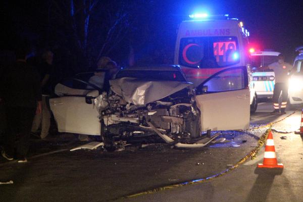 BOLU'da, iş makinesine arkadan çarpan otomobilde bulunan İsmet Mühürcüoğlu (93) hayatını kaybederken, Birsen Mühürcüoğlu yaralandı.