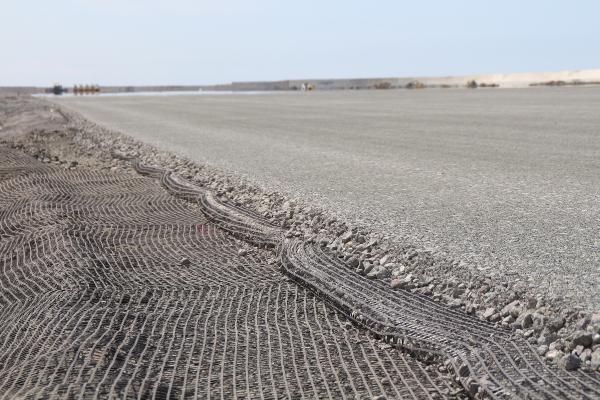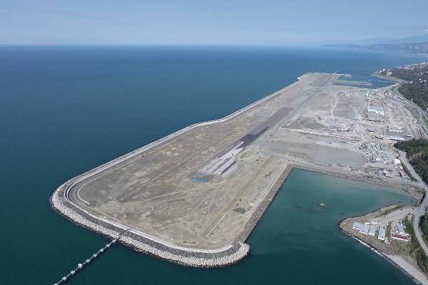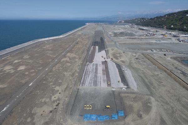 Rize-Artvin Havalimanı'nda pistlerin beton kaplamasına geçildi. Altyapıda yüzde 90'ı tamamlanan projede, 10 katlı binaya eş değer yükseklikte denize dolgu yapılıyor.