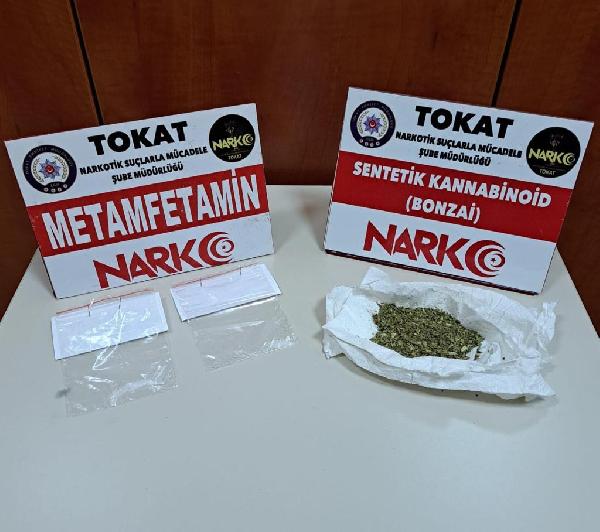 Tokat Emniyet Müdürlüğü Narkotik Suçlarla Mücadele Şube Müdürlüğü ekiplerinin uyuşturucu satıcılarına yönelik yürütülen çalışma kapmasında Tokat, Samsun ve Ankara'da eş zamanlı operasyon düzenledi. Operasyonlarda O.B., M.B.,F.Ö., B.F. ve B.P gözaltına alındı. 5 şüpheliye ait adreslerde yapılan aramalarda 80 sentetik ecza, 13,81 gram bonzai, 10 extacy hap, 6,17 gran meramfetamin, 1,80 gram esrar ele geçirildi. Gözaltına alınan 5 kişi emniyetteki sorgularının ardından adliyeye sevk edildi. Şüphelilerden O.B. M.B. ve F.Ö. sevk edildikleri mahkemede tutuklanarak cezaevine gönderildi. Diğerleri serbest bırakıldı.