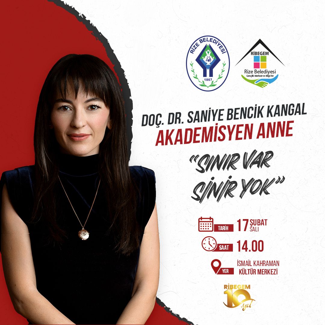 Rize Belediyesi ile Rize Belediyesi Gençlik Merkezi ve Bilgi Evi (RİBEGEM) iş birliğinde, çocuk gelişimi ve ebeveynlik alanındaki çalışmalarıyla tanınan Doç. Dr. Saniye Bencik Kangal, Rize’de anne ve babalarla bir araya gelecek.