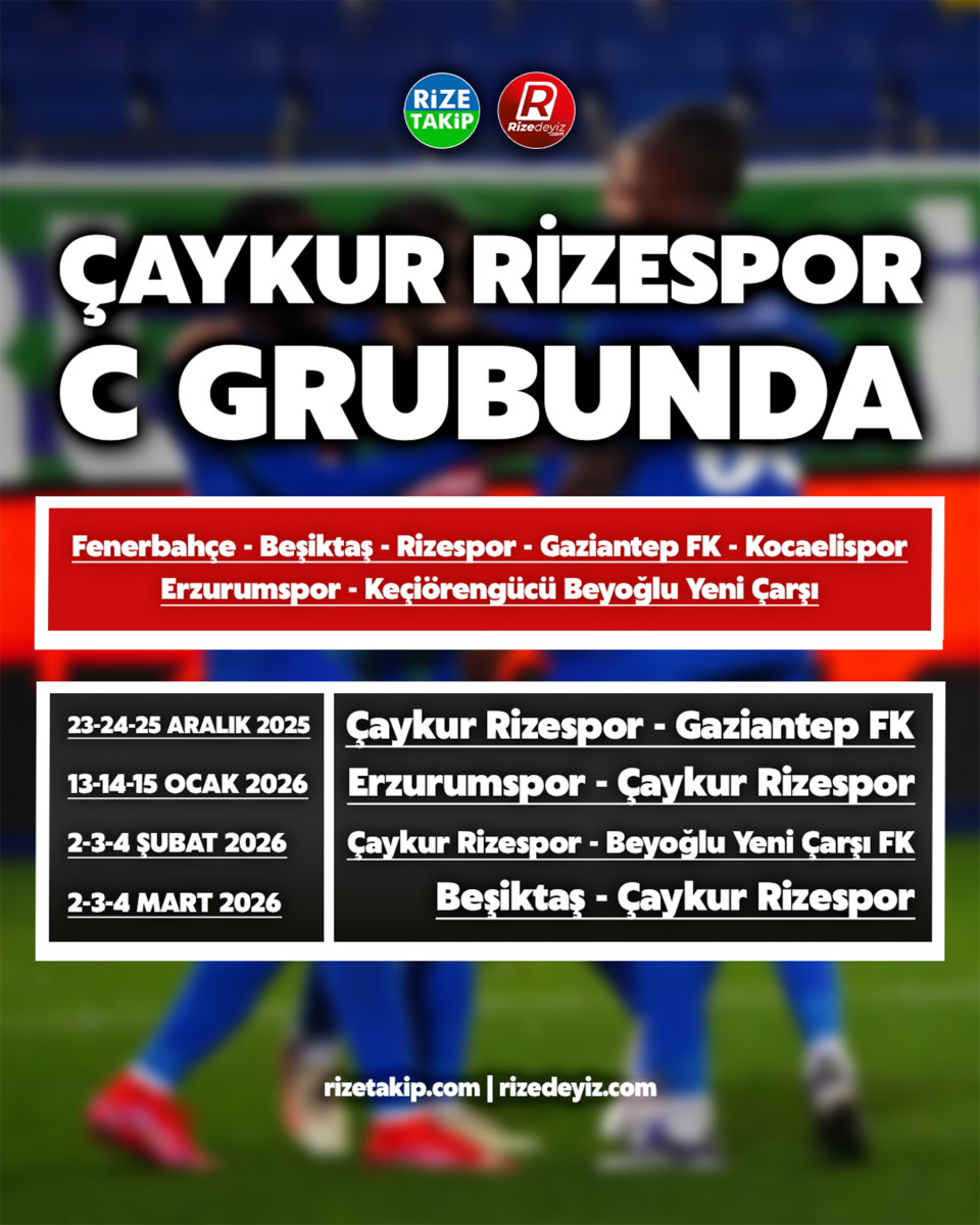 Ziraat Türkiye Kupası grup müsabakaları kura çekimi tamamlandı ve Çaykur Rizespor’un yer aldığı C Grubu resmen açıklandı. Yapılan çekiliş sonucunda yeşil-mavililer, Fenerbahçe, Beşiktaş, Gaziantep FK, Kocaelispor, Erzurumspor FK, Keçiörengücü ve Beyoğlu Yeni Çarşı ile C grubunda yer aldı.