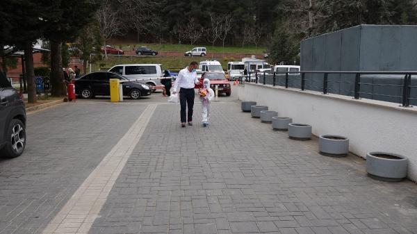 TRABZON’da 8 yaşındaki Tuğçe Yakıcı, babasının yardımıyla kendi bedenine göre özel tasarlanan filyasyon ekibi tulumu giyip, aldığı çiçeklerle gittiği hastanede, salgın nedeniyle aylardır ayrı yaşamak zorunda kaldığı doktor annesi Nalan Yakıcı’yı (43) ziyaret etti, Tıp Bayramı’nı kutladı.