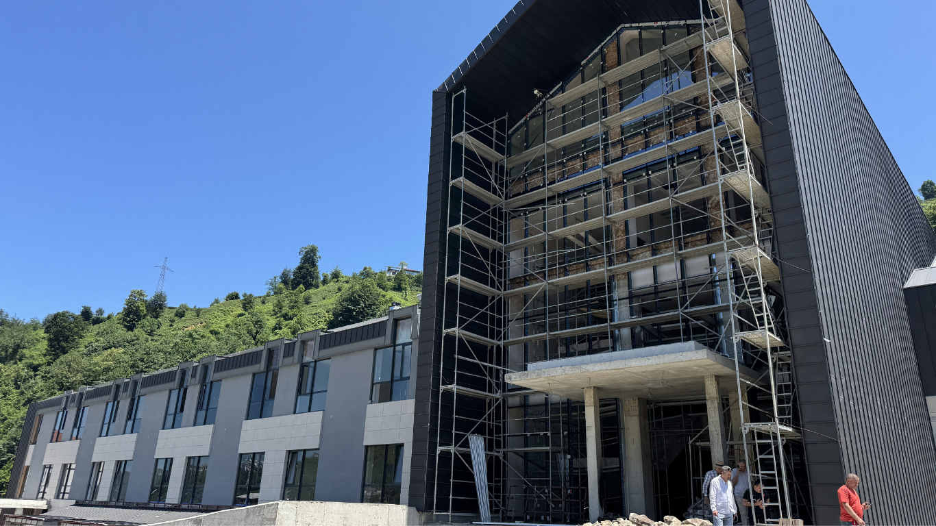Rize'nin Güneysu ilçesinde yapımı devam eden 100 yataklı Tenzile Erdoğan Güneysu Devlet Hastanesi'nin 2026'da hizmete alınması planlanıyor.