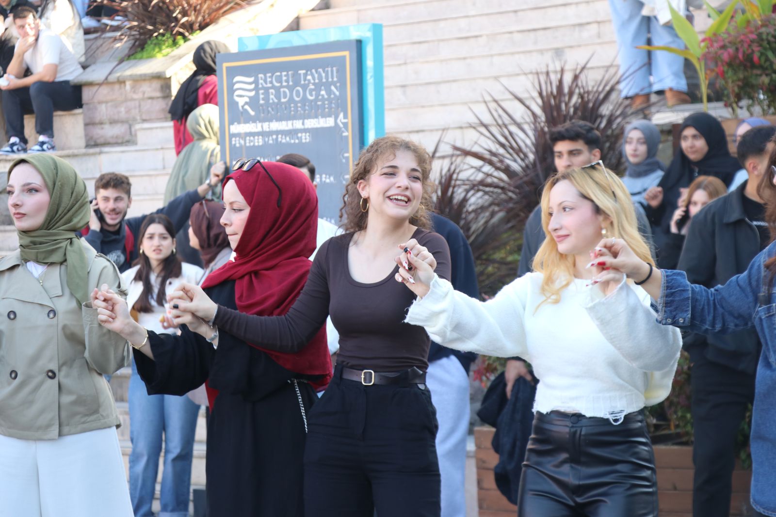 Kongre ve Kültür Merkezi önünde gerçekleşen şenliğe katılan öğrenciler, tulum eşliğinde horon tepip, ikram edilen hamsilerin tadına baktı.