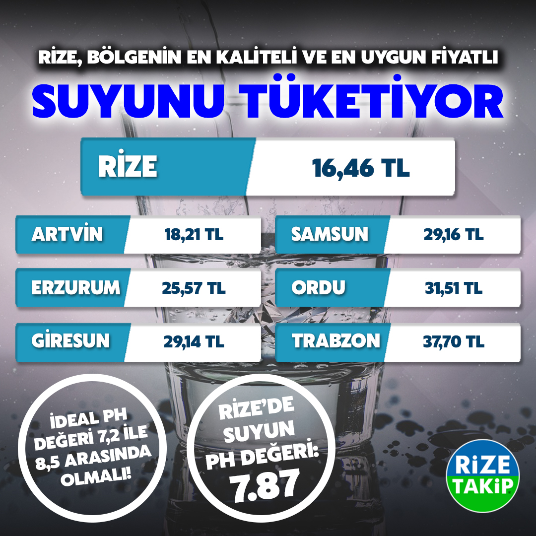 Bu tabloya bakıldığında Rize, hem suyun kalitesi hem de altyapı yatırımlarıyla birlikte, çevre iller arasında en uygun fiyatlı suyu sunan şehir olarak öne çıkıyor.