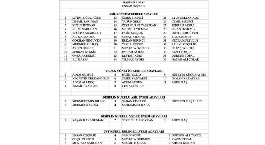 Kurultay sonunda İl Başkanı, Yönetim Kurulu, Disiplin Kurulu ve Üst Kurul Delegeleri için aday listesi resmen duyuruldu.