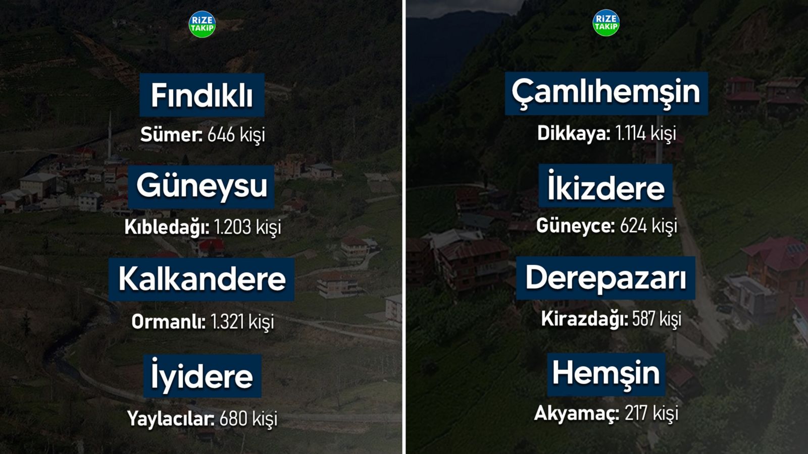 Rize’de ilçelere göre nüfus bakımından en kalabalık köyler açıklandı.