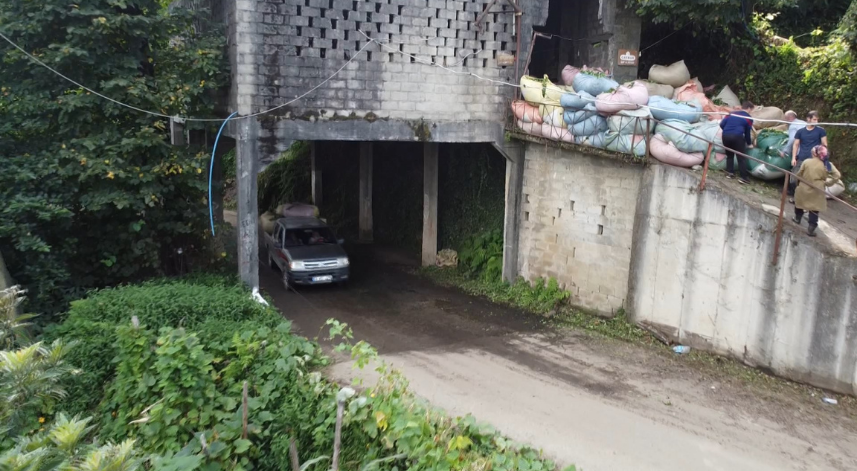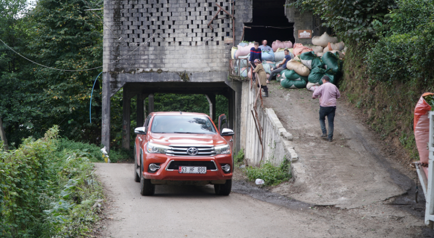 Rize'nin Pazar ilçesinde arazi yetersizliği nedeniyle çay alım yeri, mahalle yolu üzerine inşa edildi. Yöre halkı, 'tünel alım yeri' olarak tanımladığı yoldan araçlarıyla geçerek köylerine ulaşırken; bir yandan yaş çaylar alım yerinin tabanından yola açılan boşluktan kamyonete boşaltılıyor.