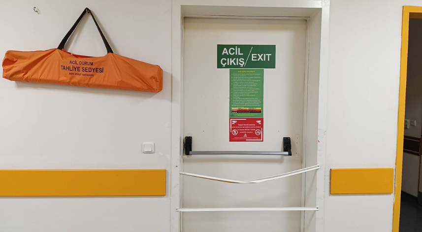 Sosyal medyada, hastanedeki yangın merdivenlerine açılan kapıların, plastik kablo kanalları ile kapatıldığında dair paylaşımlar yapılmıştı.