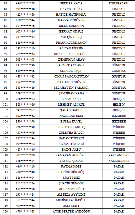 Rize Çalışma ve İş Kurumu (İŞKUR) ve Gençlik ve Spor İl Müdürlüğü iş birliğiyle yürütülen 120 kişilik TYP’de asil adaylar belli oldu.