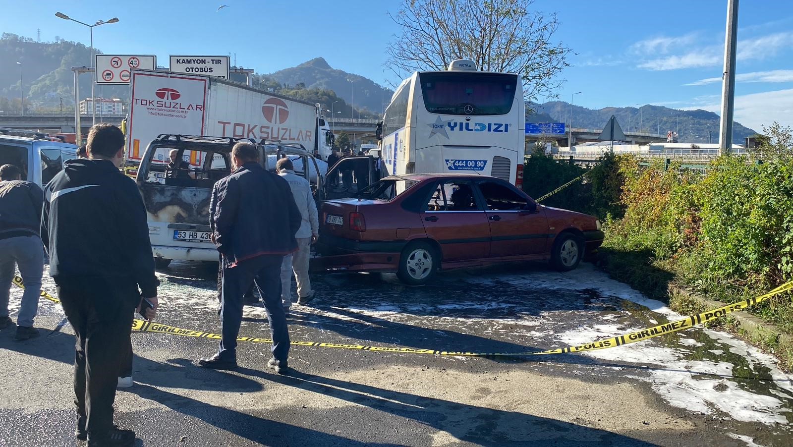 Olay ilçenin Kuledibi Mahallesi'nde meydana geldi. Alınan bilgiye göre, 53 HB 436 plakalı Mercedes marka minibüsüyle seyir halinde olan sürücü Mehmet Yılmaz, aracından duman çıktığını fark etti. Yılmaz, panikle aracı yol kenarına çekerek aracından dışarı çıktı. Sürücünün araçtan inmesinin hemen ardından minibüs bir anda alev aldı. Kısa sürede büyüyen alevler, aracın hemen yanında park halinde bulunan Fiat marka otomobile sıçradı. Yangın ikinci aracı da tamamen kaplayarak kullanılamaz hale getirdi. Alevler daha sonra bitişikte bulunan otobüse de ulaştı. Otobüs yangından kısmen etkilenirken, olay yerine çağrılan Hopa Belediyesi İtfaiye ekipleri yangına müdahale ederek kısa sürede kontrol altına aldı. Yangında minibüs ve otomobil tamamen yanarken, otobüste maddi hasar oluştu.