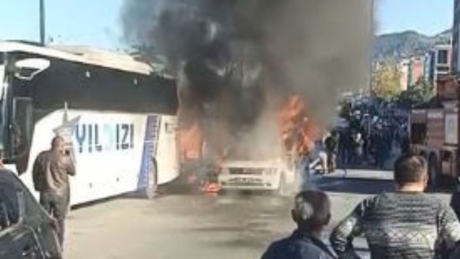 Artvin'in Hopa ilçesinde Mercedes marka bir minibüste çıkan yangın kısa sürede büyüyerek yanında bulunan biri yolcu otobüsü olmak üzere iki araca sıçradı. Mercedes'in tamamen yandığı yangında bir otomobil ile otobüs yangında zarar görürken, araçlarda maddi hasar meydana geldi.