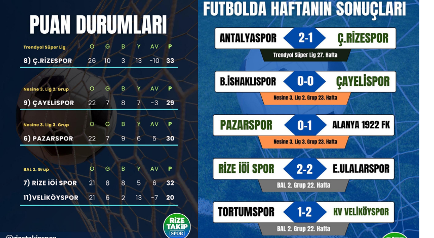Rize takımları önümüzdeki hafta daha iyi sonuçlar almak için sahaya çıkacak. Takımlarımıza başarılar dileriz!