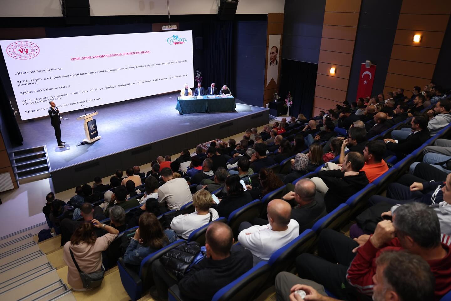 Toplantıya; Gençlik ve Spor İl Müdürü Ramazan Öztürk, İl Milli Eğitim Müdürü Halil İbrahim Akmeşe, şube müdürleri, beden eğitimi öğretmenleri, antrenörler ve il temsilcileri katıldı.