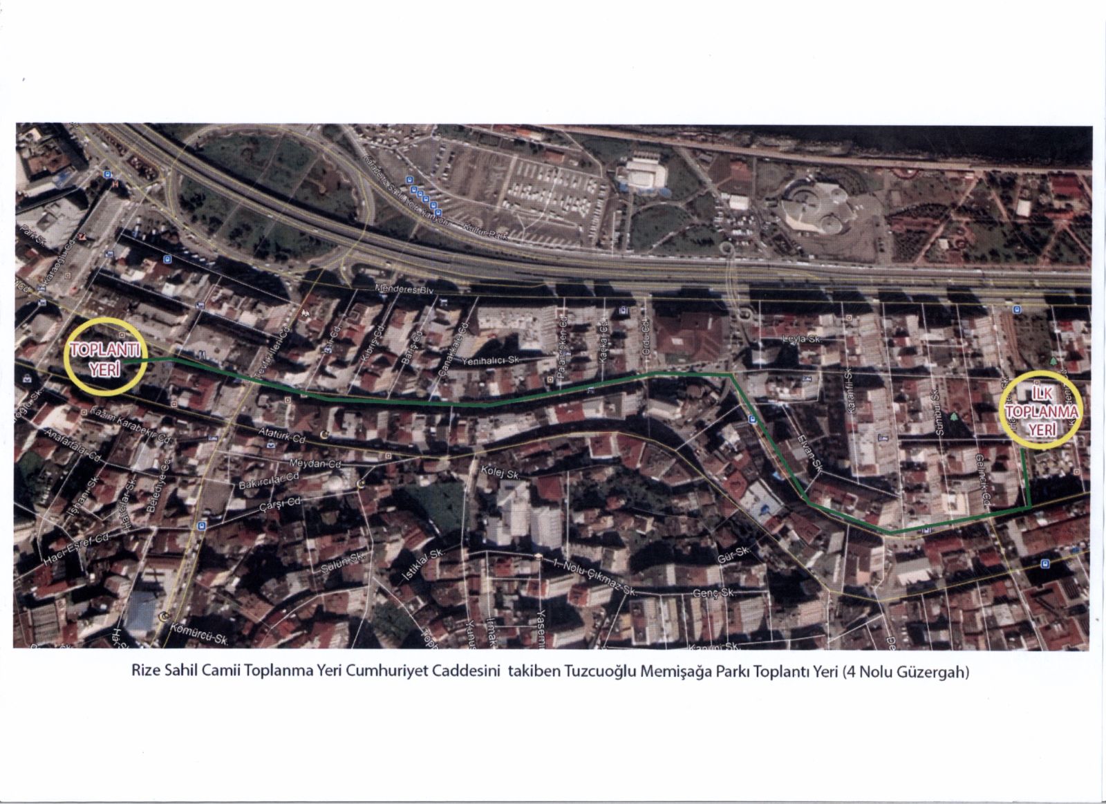 a) Başlama Yeri (İlk Toplanma Yeri): Rize Sahil Camii toplanma yeridir