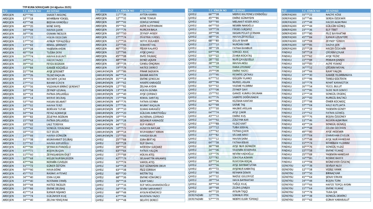 Başvuruların ardından 14 Ağustos Perşembe günü, saat 10.00'da Ali Metin Kazancı Rize Lisesi'nde noter kurası çekildi.