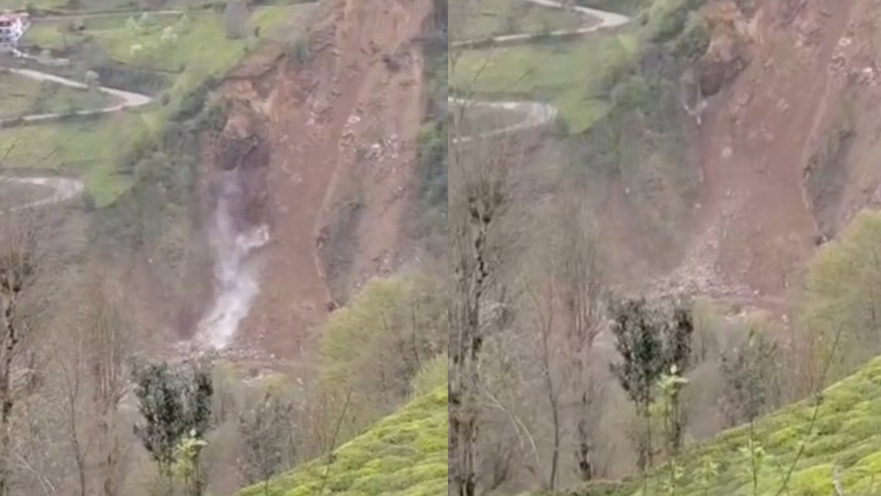 Rize'nin Ardeşen ilçesinde heyelan sonucu yamaçtan kopan dev kaya parçası, dere yatağına yuvarlandı. O anlar, cep telefonu kamerasıyla görüntülendi.