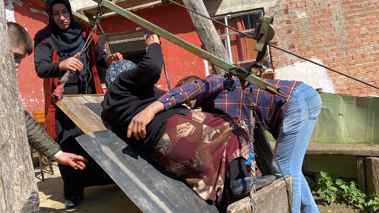 Annesini ilkel teleferiğe bindirirken büyük korku yaşadıklarını belirten Mustafa Bozkurt ise "Annemi hastalandığı zaman teleferikle aşağıya indirip, çıkarıyoruz. Korkuyoruz ama yapacak bir şeyimiz yok. Annemi sırtıma alıp, bu patikadan indirmeye çalışsam çok riskli; kayabiliriz. Tek başıma indiremiyorum. Sedyeyle de inmiyor. Buradan teleferik yavaş yavaş verilirse, 15 dakikada aşağıya iniyor. O, 15 dakika içerisinde, 'Acaba annem aşağıya indi mi yoksa düştü mü?' diye bekliyoruz. Burada araç yolu olmadığı için annemi, bu tehlikeli teleferiğe bindirmek zorunda kalıyorum. Aşağıya inene kadar da kendimi çok kötü hissediyorum" diye konuştu.