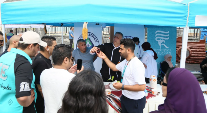Rize'ye yurt dışından gelen misafirlerin de faydalanabileceği tanıtım sunumlarının yapıldığı programda, Rize'nin çeşitli ilçelerine ait yöresel lezzetler sergilendi.