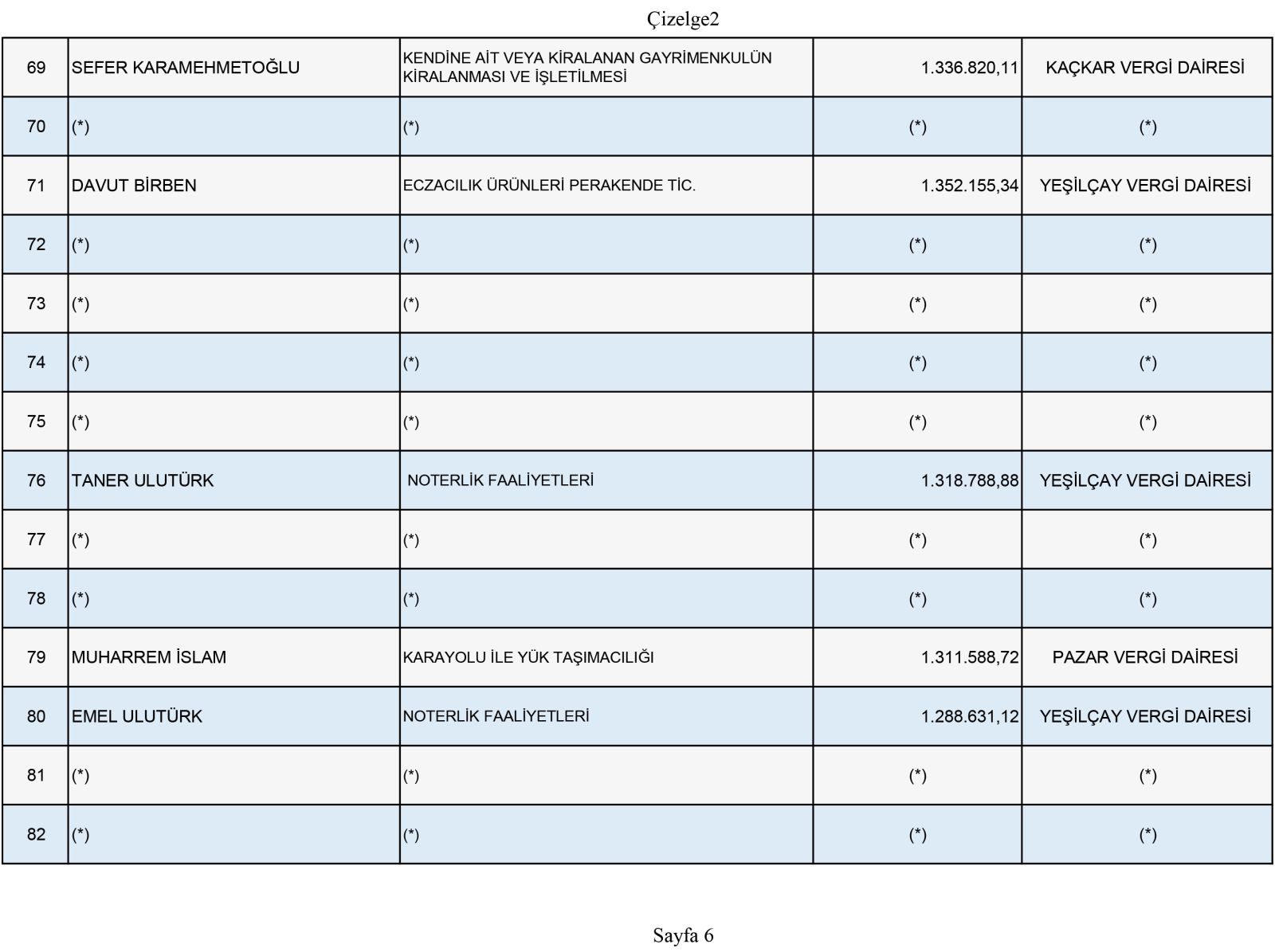 Listede, Nurettin Cengiz 5 milyon 178 bin 469,87 TL ile 17, Özgür Özyılmaz 4 milyon 138 bin 946,88 TL ile 20, Muhammedul Emin Ustaoğlu 3 milyon 430 bin 242,43 TL ile 21, Burhan Bakır 3 milyon 415 bin 362,88 TL ile 22 ve Ali Rıza Bakır 3 milyon 122 bin 112,88 TL ile 24. sırada bulundu.