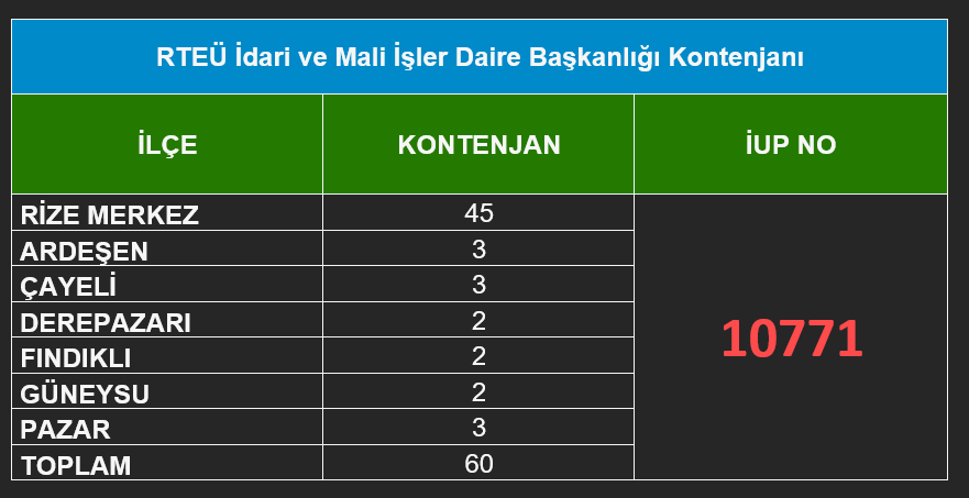 Rize'de, Recep Tayyip Erdoğan Üniversitesi (RTEÜ) ile Türkiye İş Kurumu (İŞKUR) işbirliğinde, İşgücü Uyum Programı (İUP) kapsamında merkez ve ilçelerde 60 kişi istihdam edilecek.