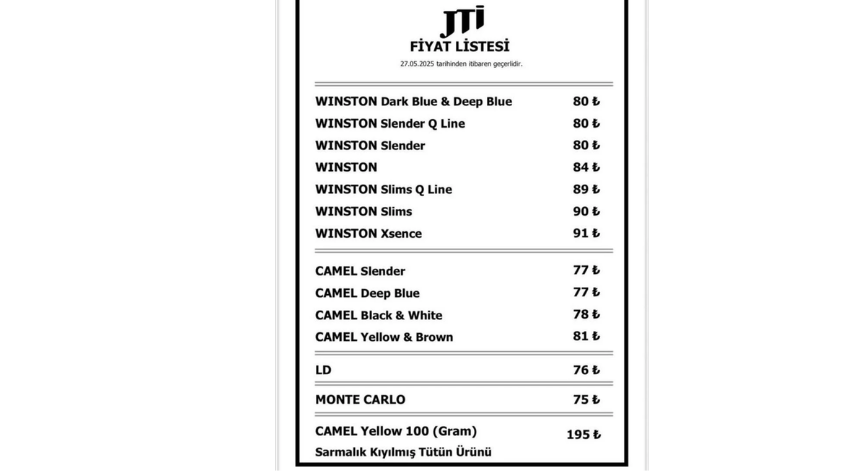 JTİ sigara grubuna, 27 Mayıs Salı gününden itibaren geçerli olmak üzere zam geldi.