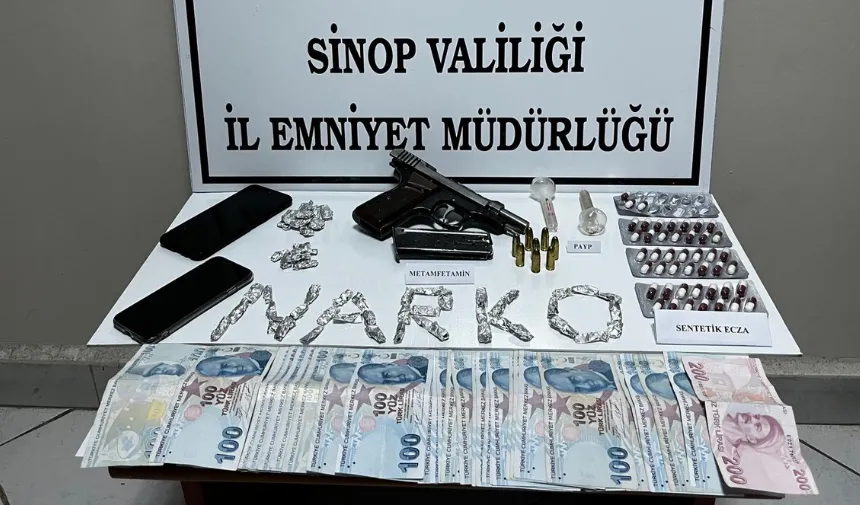 Aramalarda, 43,9 gram sentetik uyuşturucu, 45 uyuşturucu hap, bir ruhsatsız tabanca ve suçtan elde edildiği değerlendirilen bir miktar para ele geçirildi.