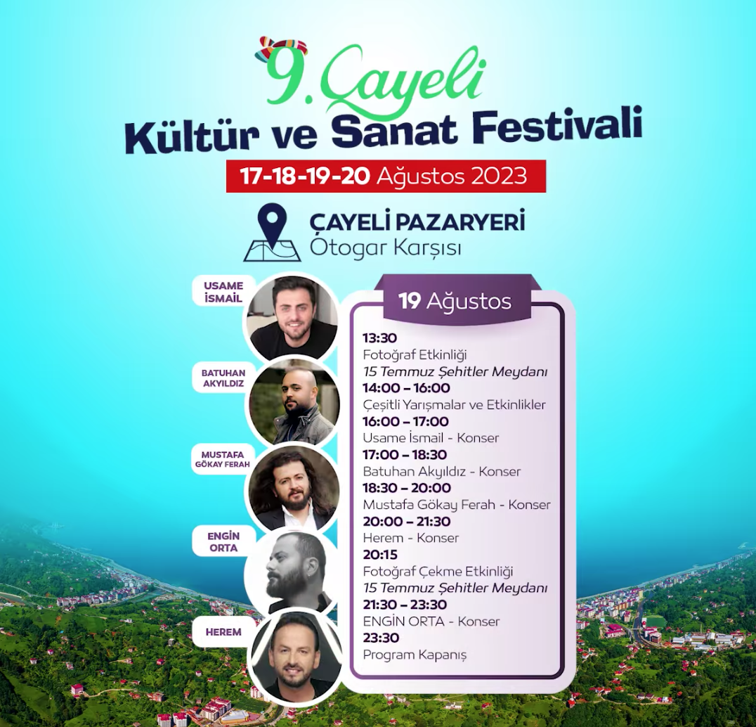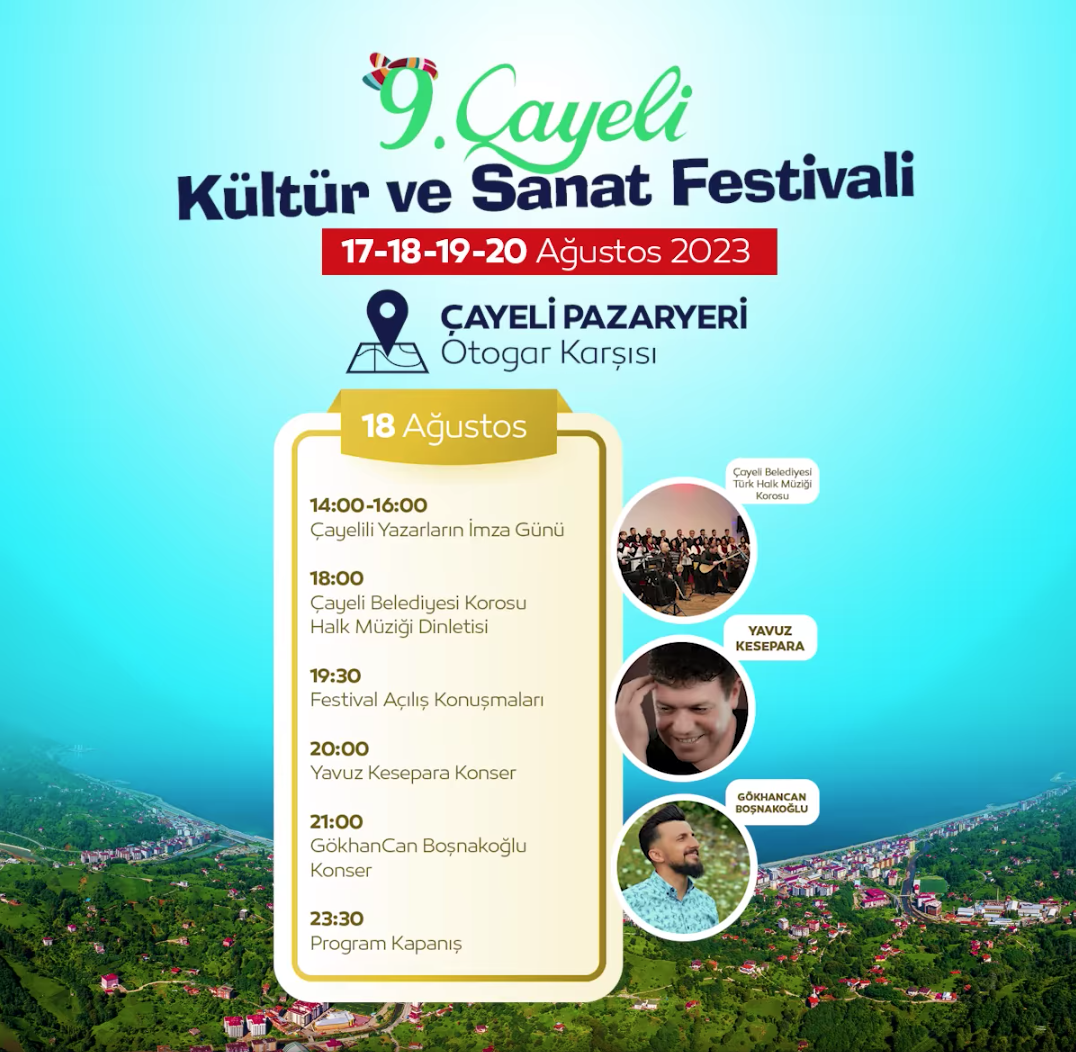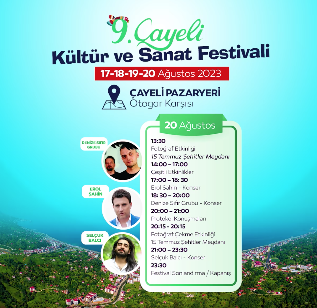 9. Çayeli Kültür ve Sanat Festivali 17-20 Ağustos tarihlerinde yapılacaktır.