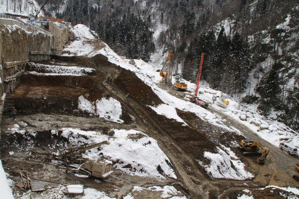 RİZE'nin Çamlıhemşin ilçesinde dünyaca ünlü turizm merkezi Ayder Yaylası’nda kentsel dönüşüm kapsamında dağ yamacının içerisine 1732 araçlık otopark inşaatı sürüyor.