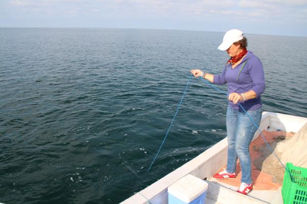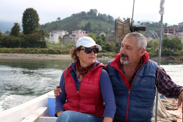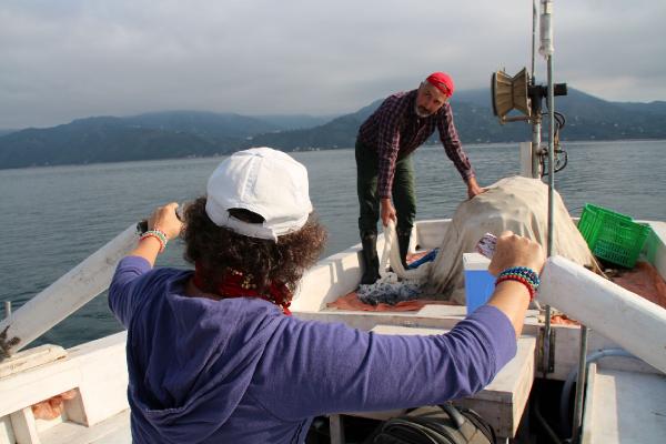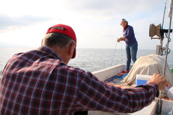 RİZE’nin Ardeşen ilçesinde Necip (52) ve Yasemin Akmermer (49) çifti, 25 yıldır birlikte açıldıkları denizde balıkçılık yaparak geçimlerini sağlıyor.