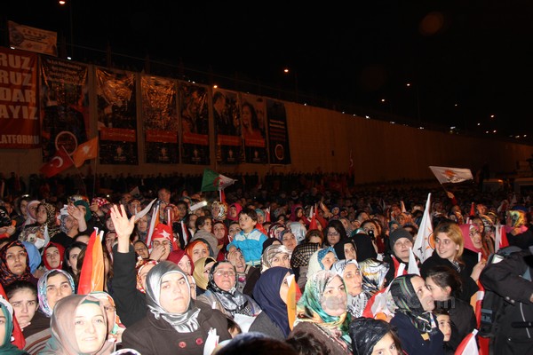 Ramazan ayında etrafı süsleyen mahya, Camii'nin iki minaresi arasına asılan ışıklı yazılardır.