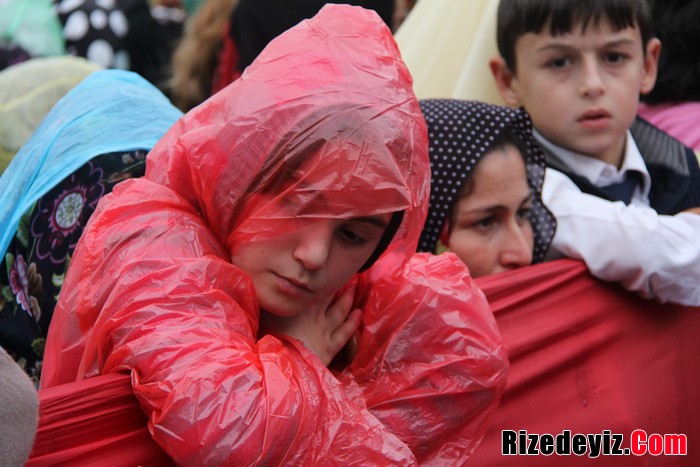 Başbakan Erdoğan'ı karşılayan yoğun kalabalık sağanak yağmura aldırış etmedi.