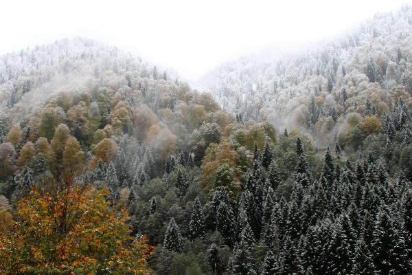 Rize'nin Çamlıhemşin ilçesine bağlı Ayder Yaylası sonbahar renklerine büründü.