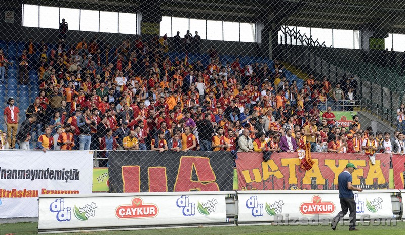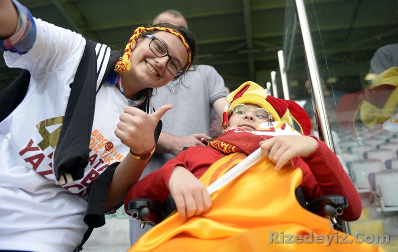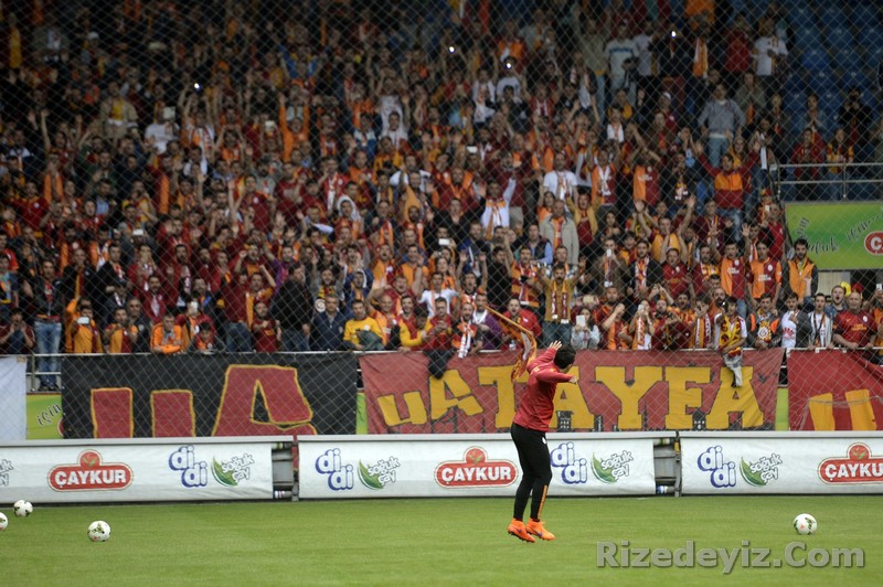 Karşılaşma öncesi sarı-kırmızılı futbolcuları tribüne çağırarak "üçlü çektiren" taraftarlar, "Şampiyon Galatasaray" tezahüratlarıyla takımlarına sevgi gösterilerinde bulundu.