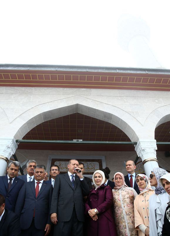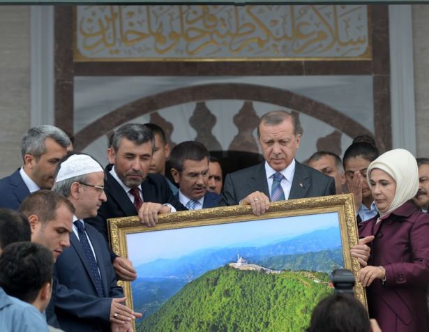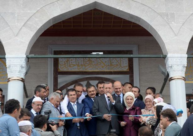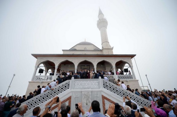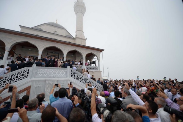Cumhurbaşkanı Erdoğanın konuşmasının ardından dua edilirken, Erdoğana caminin fotoğrafının bulunduğu bir tablo hediye edildi. Ardından caminin açılışı Cumhurbaşkanı Recep Tayyip Erdoğan, eşi Emine Erdoğan, Gümrük ve Ticaret Bakanı Nurettin Canikli, Orman ve Su İşleri Bakanı Veysel Eroğlu, Cumhurbaşkanlığı Başdanışmanı Binali Yıldırım, AK Parti Genel Başkan Yardımcısı Süleyman Soylu ve çok sayıda davetlinin katılımı ile gerçekleştirildi.