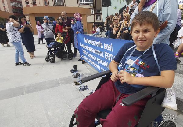 RİZE'de Duchenne Musküler Distrofi'li (DMD) sahip çocukların aileleri, 7 Eylül DMD Farkındalık Günü nedeniyle, çocuklarının ayakabılarını sokağa bırakıp ‘Çocuklarımız ayakkabılarını eskitsin istiyoruz’ mesajıyla kas hastalığına dikkat çekti.