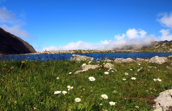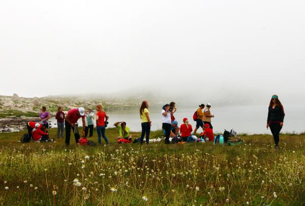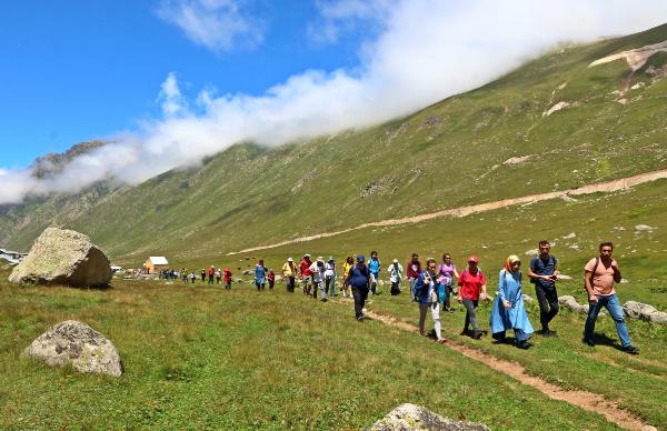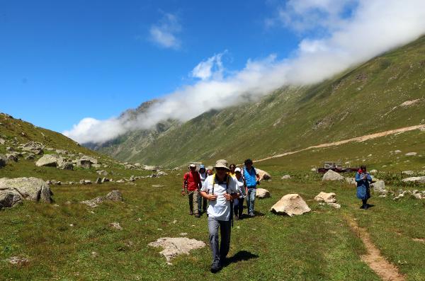 RİZE'nin Çamlıhemşin ilçesinde, deniz seviyesinden 2 bin 900 metre yükseklikteki Karmik Yaylası'na çıkan 3 dağcı, sıcaklığı sıfırın altında 5 derece olan Karmik buzul gölüne girerek yüzdü.