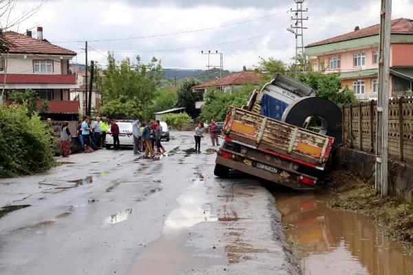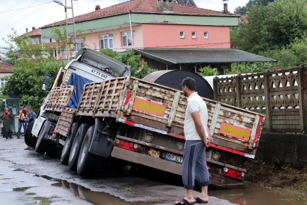 Ereğli'de sağanak; evi su bastı, TIR kanala devrildi