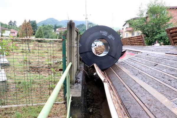 ZONGULDAK'ın Ereğli ilçesinde, etkili olan sağanak nedeniyle yollar göle döndü, sac rulo yüklü TIR su kanalına devrildi.