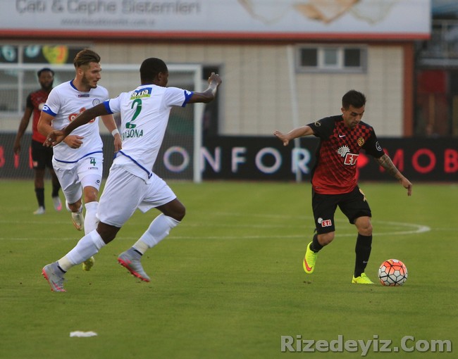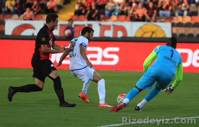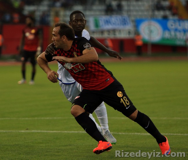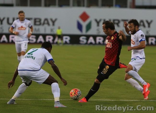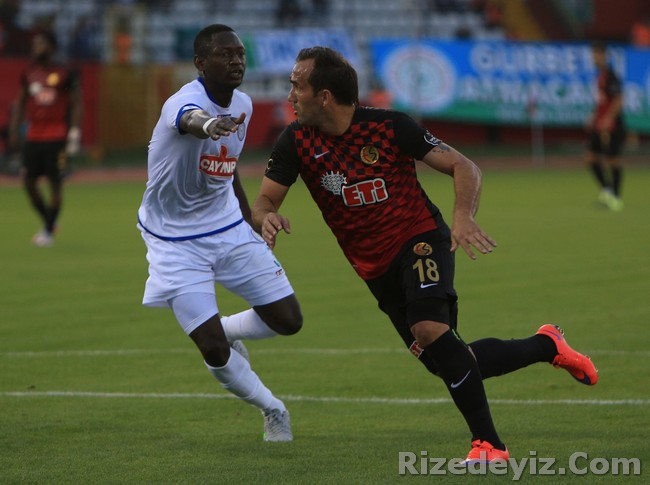 36. dakikada Çaykur Rizespor atağında Sercan Kaya`nın sağ kanattan yaptığı ortada Kweuke`nin topa kafa vuruşunda, meşin yuvarlak az farkla üstten auta gitti. 44. dakikada Sercan Kaya`nın ara pasında Eskişehirspor savunmanın arkasına sarkan Kweuke`nin şutunda top, kale direğinin yanından oyun alanını terk etti. Karşılaşmanın ilk yarısı golsüz eşitlikle sona erdi. Bu arada Ediz Bahtiyaroğlu Tribünü`nde bulunan Eskişehirspor taraftarları, `Vatan için yaşayıp, vatan için öldünüz, toprağa değil kalplere gömüldünüz` pankartı açtı.