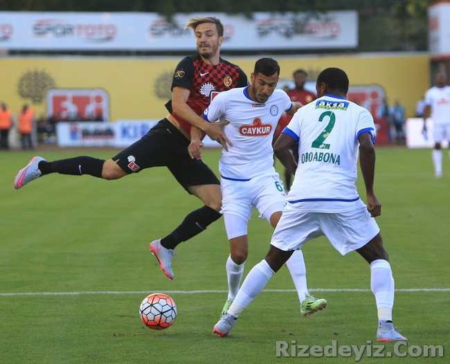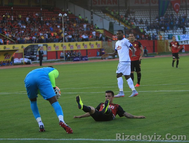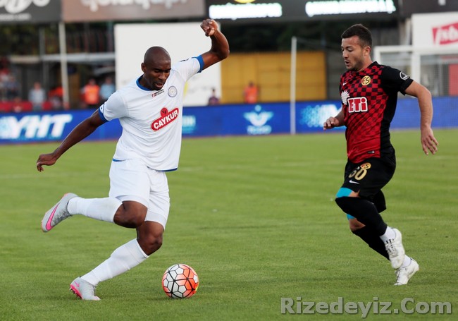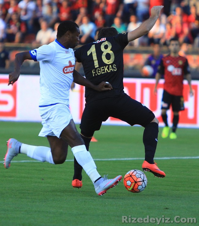Spor Toto Süper Lig`in 3. haftasında Eskişehirspor ile Çaykur Rizespor arasında oynanan karşılaşmanın ilk yarısı 0-0 tamamlandı. 5. dakikada Anıl Karaer`in sağ kanattan ceza alanına yaptığı ortada iyi yükselen Gekas`ın topa kafa vuruşunda, meşin yuvarlak az farkla üstten auta gitti. 26. dakikada Çaykur Rizespor ceza alanı önünde topla buluşan Gekas`ın yerden şutunda, top yandan auta çıktı.