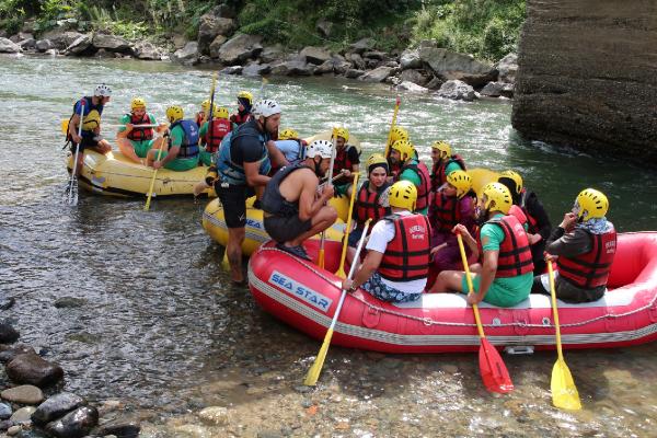Rize'nin Çamlıhemşin ilçesi Fırtına Vadisi'ndeki Fırtına Deresi'nde yapılan rafting, yerli ve yabancı turistlerin eğlencesi haline geldi.