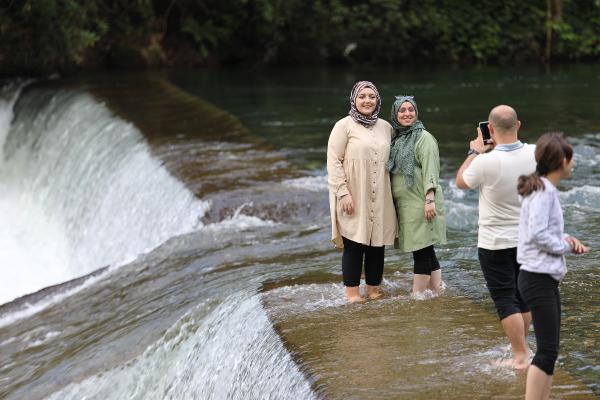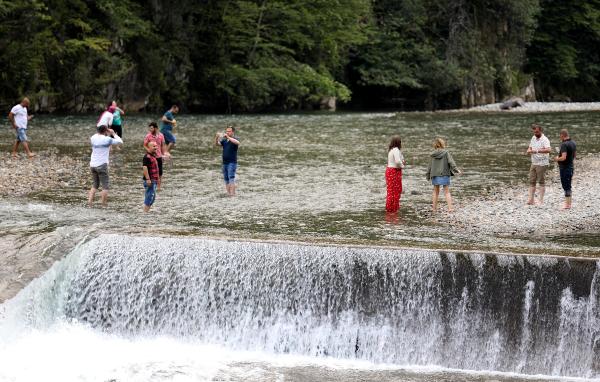 TÜRKİYE'nin en hızlı akan dereleri arasında yer alan Rize'nin Çamlıhemşin ilçesindeki Fırtına Deresi'nde inşa edilen taşkın koruma bentleri üzerine çıkan ziyaretçiler, tehlikeye aldırış etmeden fotoğraf çektirip özçekim yapıyor.