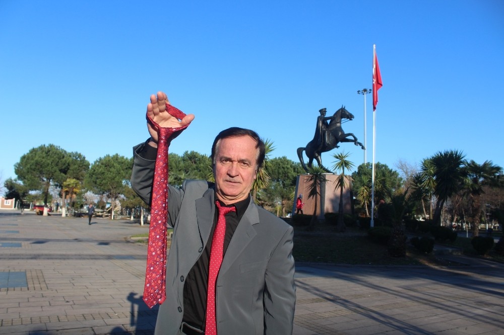 Giresun’un Görele ilçesinde ’Jet Kravatçı’ olarak tanınan Sebahattin Kara, 2 saniyede bağladığı kravat bağlama rekorunu 1 saniyeye indirdi.